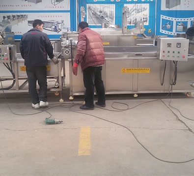 JTJML雞米花油炸生產(chǎn)線發(fā)貨現(xiàn)場(chǎng) 采用全不銹鋼制作,雙網(wǎng)帶輸送產(chǎn)品,變頻調(diào)速,定型板式網(wǎng)帶,防止變形,油水...