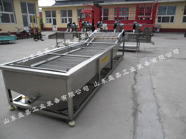 油菜菠菜等產品的清洗屬于葉類蔬菜的清洗,在選擇清洗機時不能盲目選購,對于葉類產品的清洗可以選擇清洗油菜菠菜專用高壓噴淋式蔬菜清洗機,該清洗機在物料輸送過程中,增加了噴淋清洗功能,使物料在完成汽水浴清洗后,再經過噴淋清洗,該道工序的作用是將物料表面的臟水替換去除,提高物料的清洗效果,同時,外來的清潔噴淋水在對物料進行二次清洗后,水自動流入水浴槽中,達到替換補充水浴槽內的清洗水,保持了水浴槽內水質的清潔度,即提高了清洗水的利用率,又增加了清洗效果。